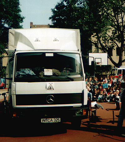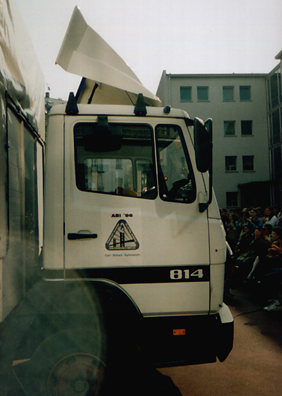 Der Abi-Truck wird am Vorabend für das große Event bereit gemacht. Location: Goetheturm. Ladung: Karaokemaschine, Erfrischungsgetränke (natürlich alkoholfrei), Kabeltrommeln und Schlafsäcke für die Besatzung.